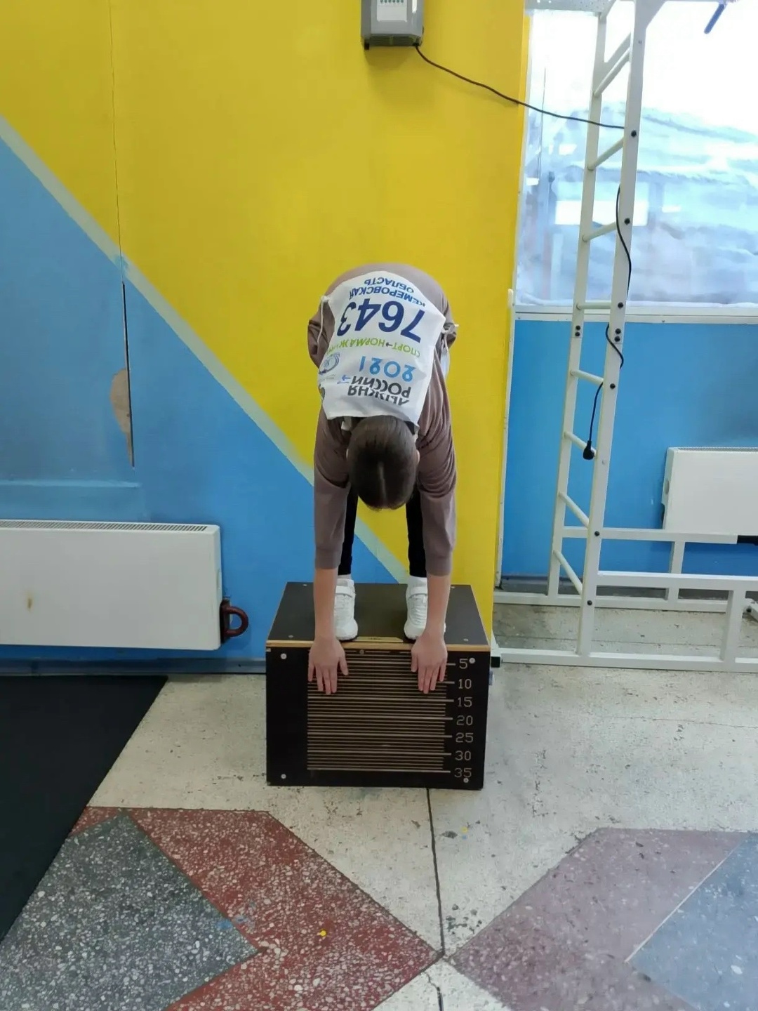 Прыжок в длину с места толчком двумя ногами выполняется в соответствующем секторе для прыжков. Место отталкивания должно обеспечивать хорошее сцепление с обувью. Участник принимает ИП: ноги на ширине плеч, ступни параллельно, носки ног перед линией отталкивания. Одновременным толчком