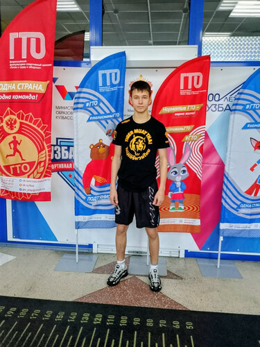 ☑️Встречаем: Артём, ему 15 лет, студент Прокопьевского горного техникума им. В.П.Романова. Занимался тайским боксом, лёгкой атлетикой, самбо и волейболом. ☑️Сегодня Артём вместе с одногруппниками приступил к выполнению нормативов комплекса ГТО. В настоящее время тренируется в тре