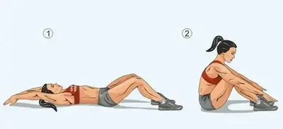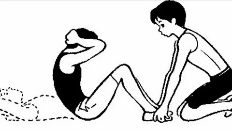 Исходное положение для подъема туловища: тестируемый лежит на спине на гимнастическом мате с согнутыми в коленях ногами, руками, сцепленными в замок за головой. Ступни ног помощник прижимает к полу, удерживая голени и ступни. Тестируемый выполняет с максимально возможной